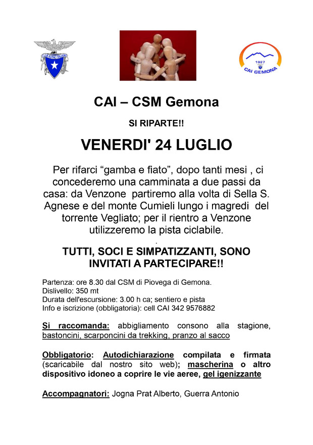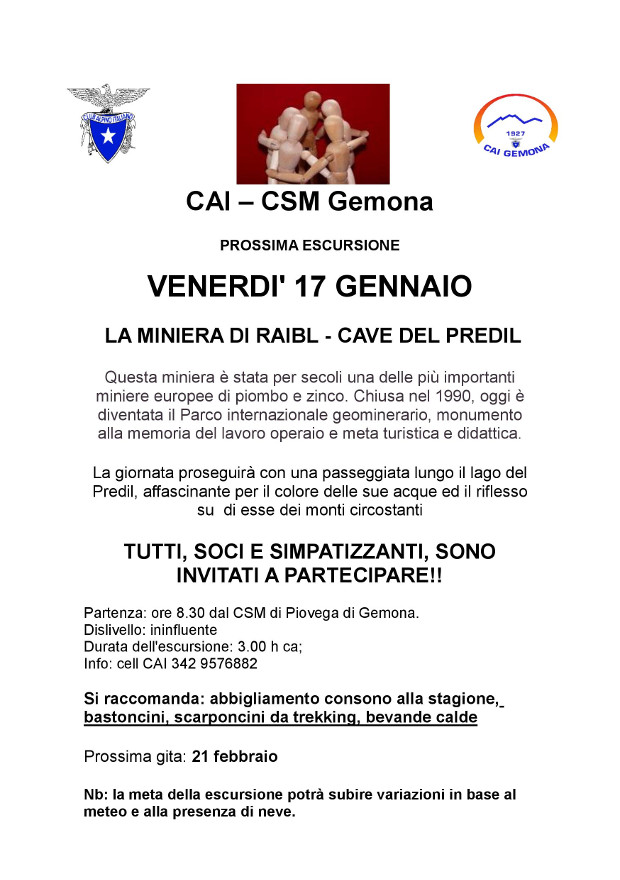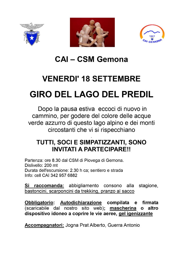 pagina in aggiornamento (modulo autodichiarazione) USCITE 19/09/2020 Lago del Predil 24/07/2020 Sella S.Agnese 21/02/2020 Alpe di Ugovizza 17/01/2020 Miniera di Raibl